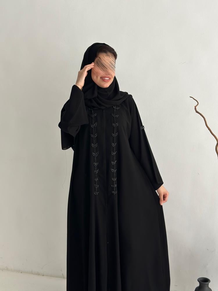 عبايه صيفيه خفيفه عمليه طقطق وتطريز مريح بشك علوي مشكل بسنابل تضيف لإطلالتك الجمال والاناقه