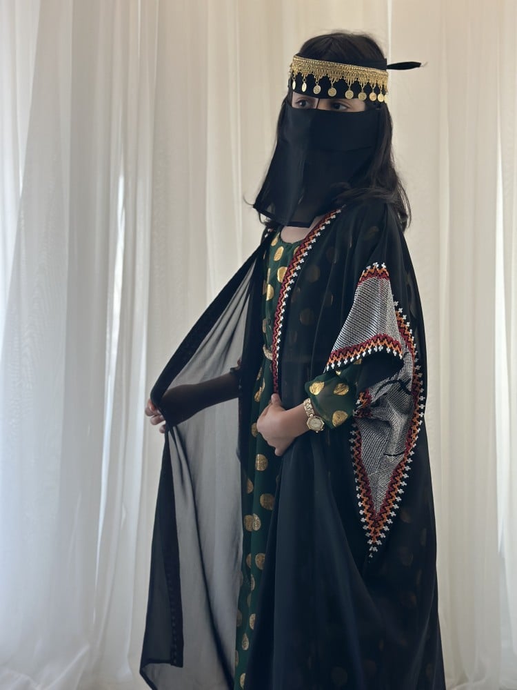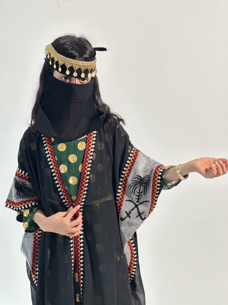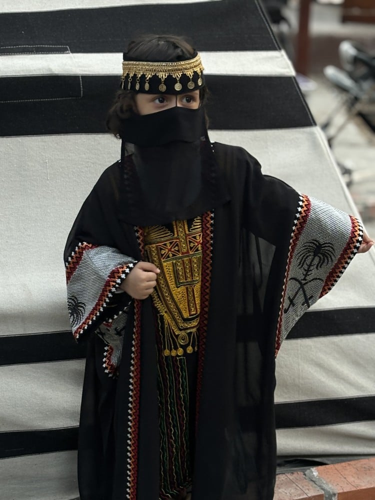 المصممة ليوم التأسيس الذي يحاكي أمجاد ثلاثة قرون على تأسيس الدولة السعودية , بقصة مبتكرة تناسب جميع المقاسات وبقماش سميا قطن طبيعي انيق و بكلفه محبوكة بسدو نجدي وخيوط عربية بألوان زاهيه ليزهى على طفلتك للاعتزاز بذكرى يوم التأسيس للمملكة
